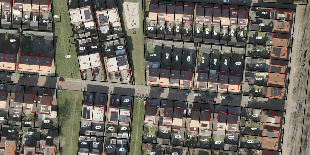 Het perceel waarop Orangerie 16 staat heeft een oppervlakte van 320 m². Dit is een groot perceel. De perceeloppervlakte wordt geregistreerd door het Kadaster. Gedetailleerde informatie over de maten van dit perceel kunt u vinden in het rapport Kadastrale kaart met maatvoering van Orangerie 16.
