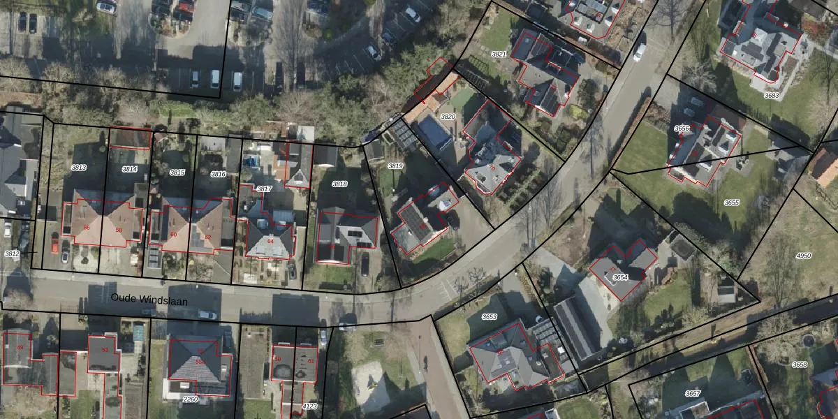 Het perceel waarop Oude Windslaan 68 staat heeft een oppervlakte van 664 m². Dit is een groot perceel. De perceeloppervlakte wordt geregistreerd door het Kadaster. Gedetailleerde informatie over de maten van dit perceel kunt u vinden in het rapport Kadastrale kaart met maatvoering van Oude Windslaan 68.