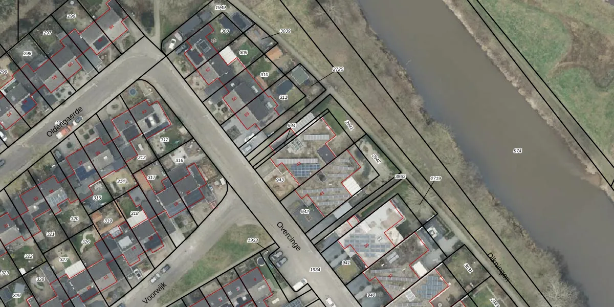 Het perceel waarop Overcinge 43 staat heeft een oppervlakte van 411 m². Dit is een groot perceel. De perceeloppervlakte wordt geregistreerd door het Kadaster. Gedetailleerde informatie over de maten van dit perceel kunt u vinden in het rapport Kadastrale kaart met maatvoering van Overcinge 43.