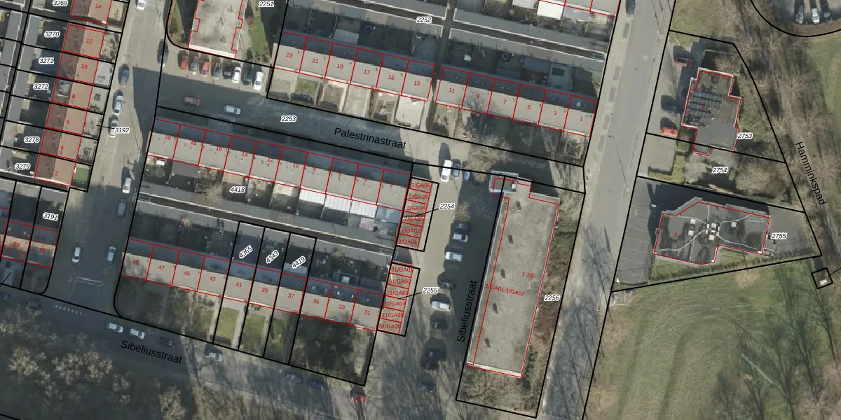 Palestrinastraat 2-GA04 is gelegen op kadastraal perceel AML01I2254. Deze kadastrale aanduiding is uniek en wordt gebruikt door het Kadaster om eigendomsrechten en andere zakelijke rechten vast te leggen. Het perceel maakt onderdeel uit van de kadastrale gemeente Ambt-Almelo.