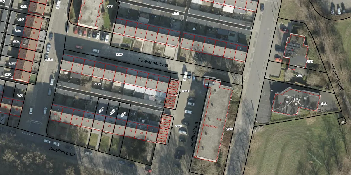 Palestrinastraat 2-GA05 is gelegen op kadastraal perceel AML01I2254. Deze kadastrale aanduiding is uniek en wordt gebruikt door het Kadaster om eigendomsrechten en andere zakelijke rechten vast te leggen. Het perceel maakt onderdeel uit van de kadastrale gemeente Ambt-Almelo.