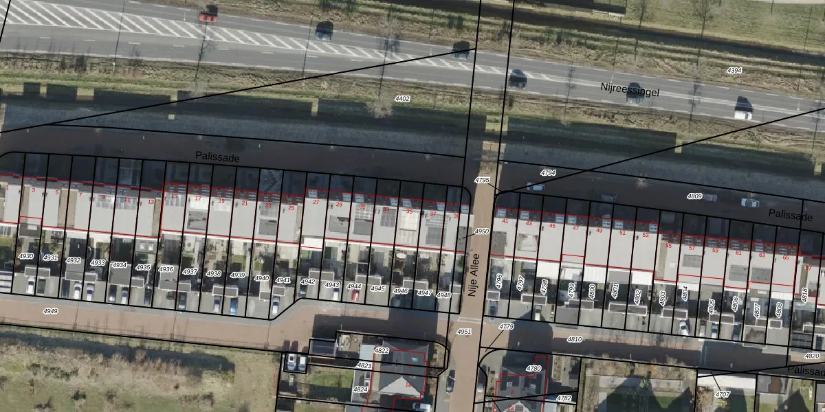 Het perceel waarop Palissade 35 staat heeft een oppervlakte van 176 m². Dit is een middelgroot perceel. De perceeloppervlakte wordt geregistreerd door het Kadaster. Gedetailleerde informatie over de maten van dit perceel kunt u vinden in het rapport Kadastrale kaart met maatvoering van Palissade 35.