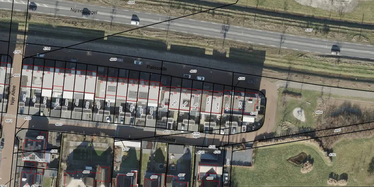Het perceel waarop Palissade 71 staat heeft een oppervlakte van 159 m². Dit is een middelgroot perceel. De perceeloppervlakte wordt geregistreerd door het Kadaster. Gedetailleerde informatie over de maten van dit perceel kunt u vinden in het rapport Kadastrale kaart met maatvoering van Palissade 71.
