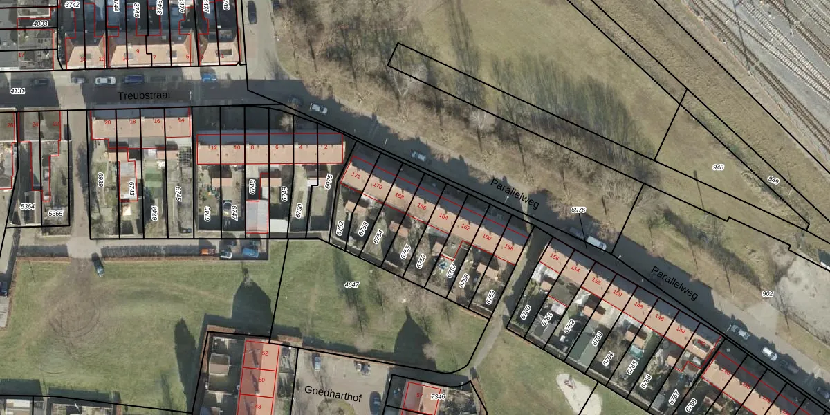 Parallelweg 166 is gelegen op kadastraal perceel AML01A6755. Deze kadastrale aanduiding is uniek en wordt gebruikt door het Kadaster om eigendomsrechten en andere zakelijke rechten vast te leggen. Het perceel maakt onderdeel uit van de kadastrale gemeente Ambt-Almelo.