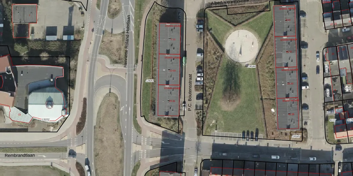 P.C. Boutensstraat 1-GA05 is gelegen op kadastraal perceel AML01H12641. Deze kadastrale aanduiding is uniek en wordt gebruikt door het Kadaster om eigendomsrechten en andere zakelijke rechten vast te leggen. Het perceel maakt onderdeel uit van de kadastrale gemeente Ambt-Almelo.