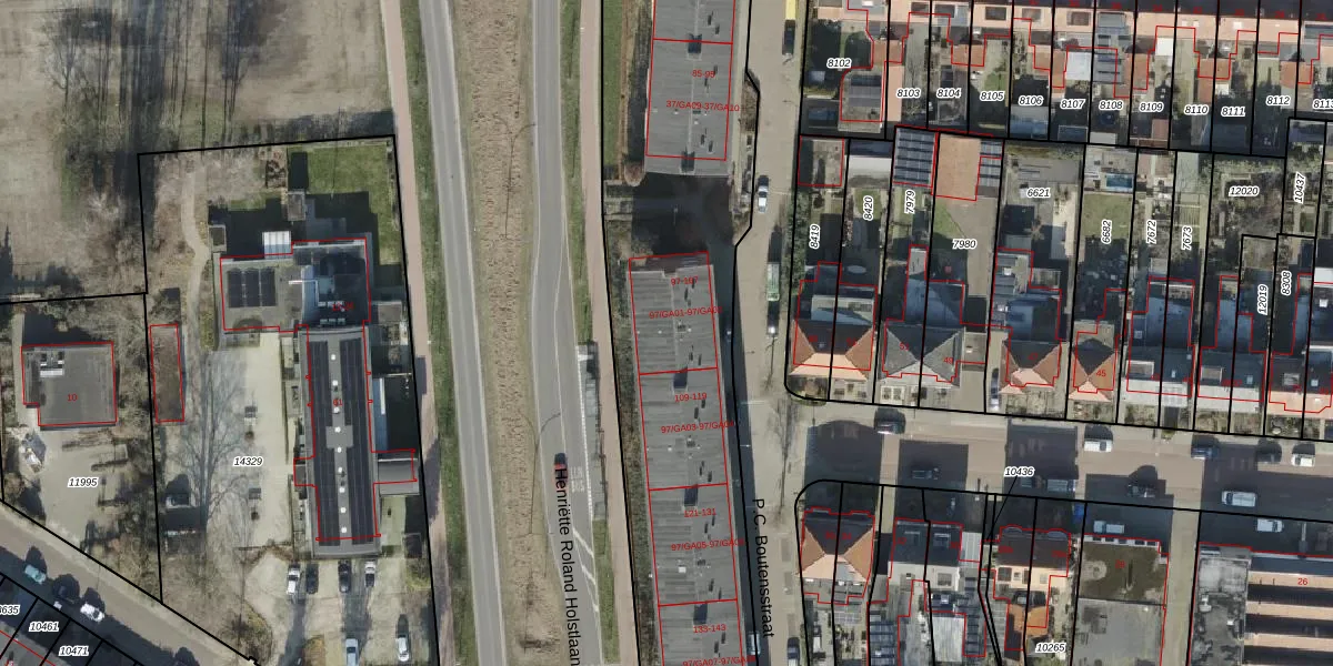 Het perceel waarop P.C. Boutensstraat 105 staat heeft een oppervlakte van 9667 m². Dit is een zeer groot perceel. De perceeloppervlakte wordt geregistreerd door het Kadaster. Gedetailleerde informatie over de maten van dit perceel kunt u vinden in het rapport Kadastrale kaart met maatvoering van P.C. Boutensstraat 105.