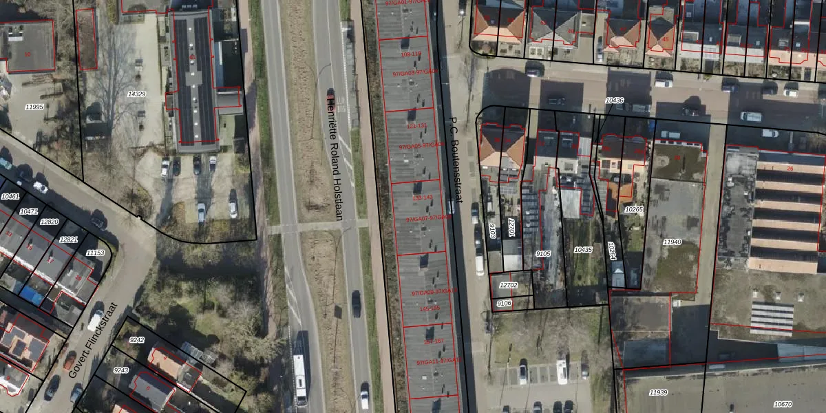 Het perceel waarop P.C. Boutensstraat 135 staat heeft een oppervlakte van 9667 m². Dit is een zeer groot perceel. De perceeloppervlakte wordt geregistreerd door het Kadaster. Gedetailleerde informatie over de maten van dit perceel kunt u vinden in het rapport Kadastrale kaart met maatvoering van P.C. Boutensstraat 135.