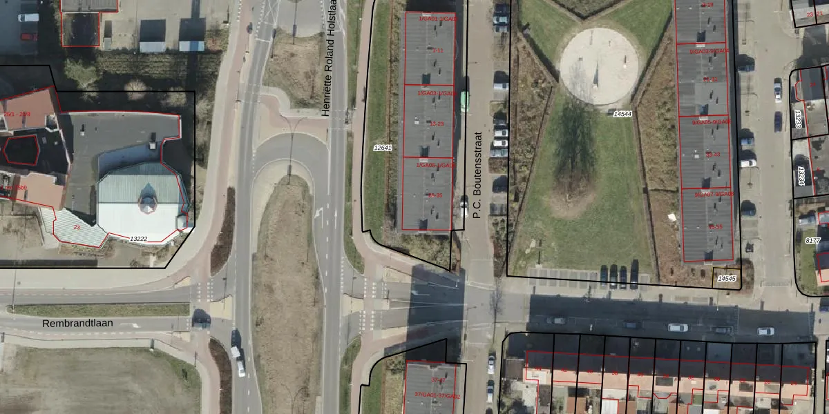 Het perceel waarop P.C. Boutensstraat 35 staat heeft een oppervlakte van 1590 m². Dit is een zeer groot perceel. De perceeloppervlakte wordt geregistreerd door het Kadaster. Gedetailleerde informatie over de maten van dit perceel kunt u vinden in het rapport Kadastrale kaart met maatvoering van P.C. Boutensstraat 35.