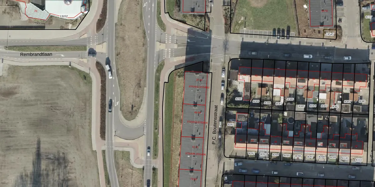 Het perceel waarop P.C. Boutensstraat 47 staat heeft een oppervlakte van 9667 m². Dit is een zeer groot perceel. De perceeloppervlakte wordt geregistreerd door het Kadaster. Gedetailleerde informatie over de maten van dit perceel kunt u vinden in het rapport Kadastrale kaart met maatvoering van P.C. Boutensstraat 47.