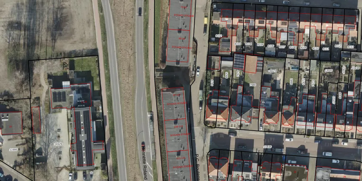 P.C. Boutensstraat 97-GA01 is gelegen op kadastraal perceel AML01H12845. Deze kadastrale aanduiding is uniek en wordt gebruikt door het Kadaster om eigendomsrechten en andere zakelijke rechten vast te leggen. Het perceel maakt onderdeel uit van de kadastrale gemeente Ambt-Almelo.