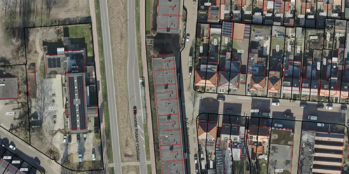 P.C. Boutensstraat 97-GA03 is gelegen op kadastraal perceel AML01H12845. Deze kadastrale aanduiding is uniek en wordt gebruikt door het Kadaster om eigendomsrechten en andere zakelijke rechten vast te leggen. Het perceel maakt onderdeel uit van de kadastrale gemeente Ambt-Almelo.