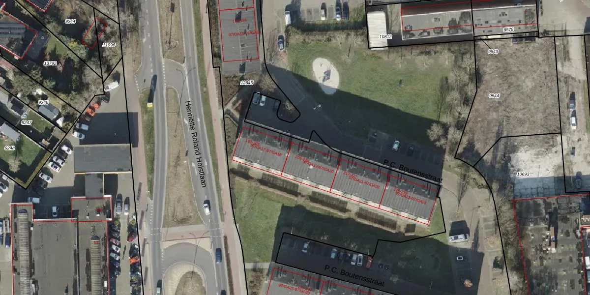 P.C. Boutensstraat 97-GA19 is gelegen op kadastraal perceel AML01H12845. Deze kadastrale aanduiding is uniek en wordt gebruikt door het Kadaster om eigendomsrechten en andere zakelijke rechten vast te leggen. Het perceel maakt onderdeel uit van de kadastrale gemeente Ambt-Almelo.