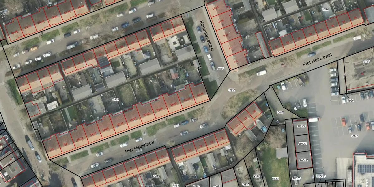 Piet Heinstraat 44 is gelegen op kadastraal perceel AML01B5959. Deze kadastrale aanduiding is uniek en wordt gebruikt door het Kadaster om eigendomsrechten en andere zakelijke rechten vast te leggen. Het perceel maakt onderdeel uit van de kadastrale gemeente Ambt-Almelo.