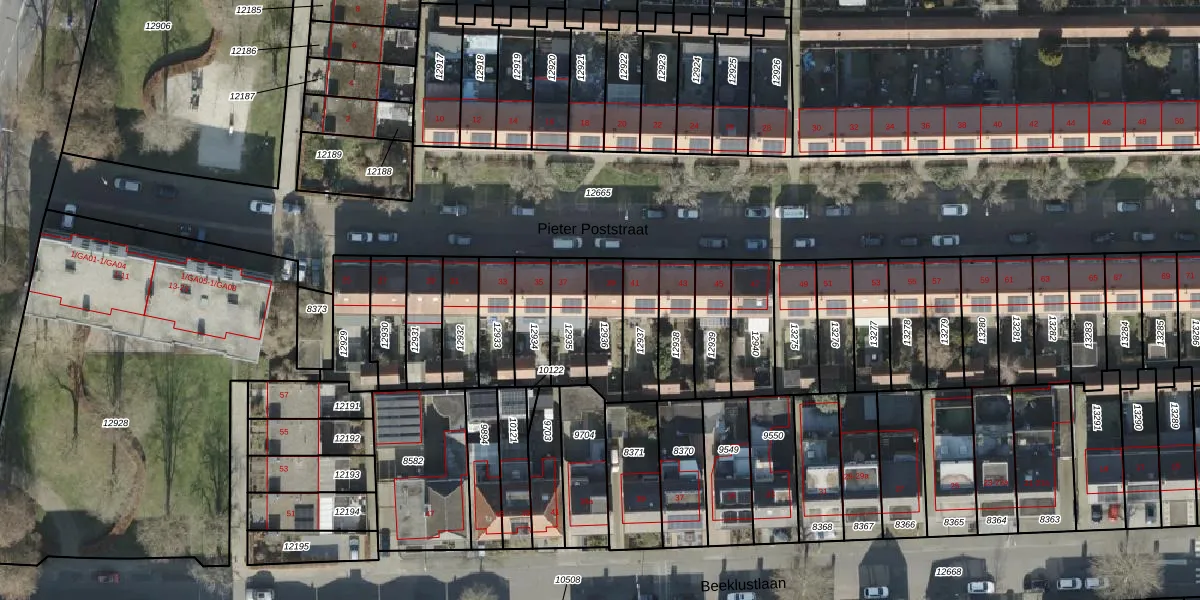 Het perceel waarop Pieter Poststraat 39 staat heeft een oppervlakte van 138 m². Dit is een middelgroot perceel. De perceeloppervlakte wordt geregistreerd door het Kadaster. Gedetailleerde informatie over de maten van dit perceel kunt u vinden in het rapport Kadastrale kaart met maatvoering van Pieter Poststraat 39.