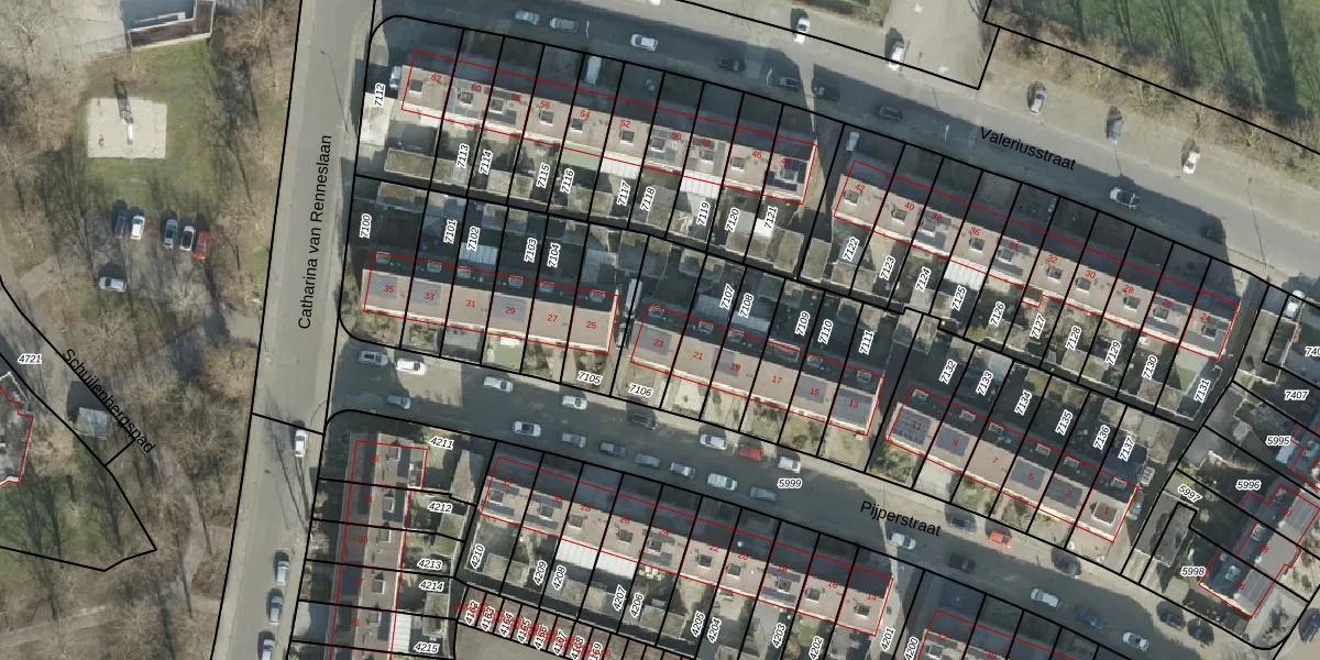 Het perceel waarop Pijperstraat 23 staat heeft een oppervlakte van 213 m². Dit is een middelgroot perceel. De perceeloppervlakte wordt geregistreerd door het Kadaster. Gedetailleerde informatie over de maten van dit perceel kunt u vinden in het rapport Kadastrale kaart met maatvoering van Pijperstraat 23.