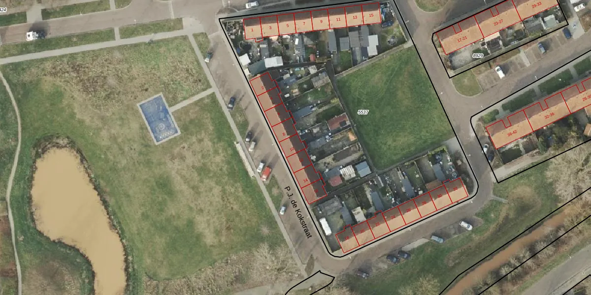 P.J. de Kokstraat 10 is gelegen op kadastraal perceel AML01B5537. Deze kadastrale aanduiding is uniek en wordt gebruikt door het Kadaster om eigendomsrechten en andere zakelijke rechten vast te leggen. Het perceel maakt onderdeel uit van de kadastrale gemeente Ambt-Almelo.