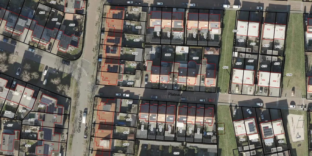 Gebruik de zoekbalk of klik op een perceel voor informatie over de adressen binnen dit perceel.