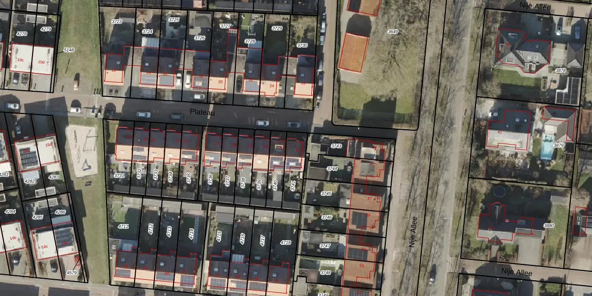 Het perceel waarop Plateau 37 staat heeft een oppervlakte van 175 m². Dit is een middelgroot perceel. De perceeloppervlakte wordt geregistreerd door het Kadaster. Gedetailleerde informatie over de maten van dit perceel kunt u vinden in het rapport Kadastrale kaart met maatvoering van Plateau 37.