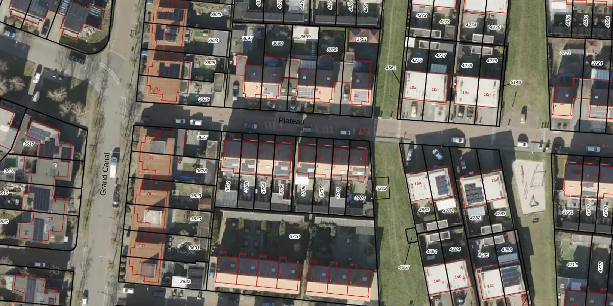 Het perceel waarop Plateau 9 staat heeft een oppervlakte van 170 m². Dit is een middelgroot perceel. De perceeloppervlakte wordt geregistreerd door het Kadaster. Gedetailleerde informatie over de maten van dit perceel kunt u vinden in het rapport Kadastrale kaart met maatvoering van Plateau 9.