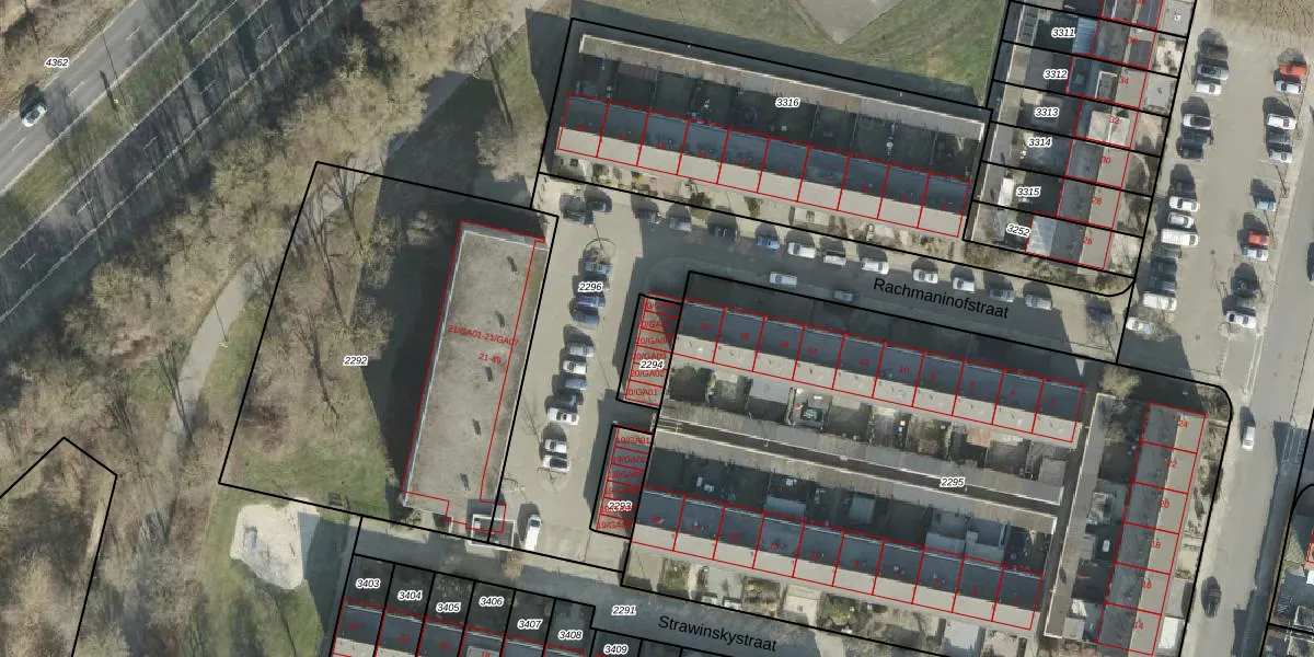 Rachmaninofstraat 20-GA05 is gelegen op kadastraal perceel AML01I2294. Deze kadastrale aanduiding is uniek en wordt gebruikt door het Kadaster om eigendomsrechten en andere zakelijke rechten vast te leggen. Het perceel maakt onderdeel uit van de kadastrale gemeente Ambt-Almelo.