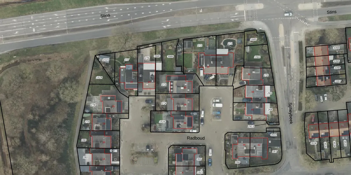 Het perceel waarop Radboud 30 staat heeft een oppervlakte van 307 m². Dit is een groot perceel. De perceeloppervlakte wordt geregistreerd door het Kadaster. Gedetailleerde informatie over de maten van dit perceel kunt u vinden in het rapport Kadastrale kaart met maatvoering van Radboud 30.