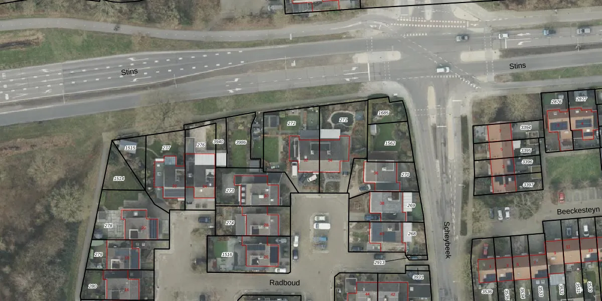 Het perceel waarop Radboud 32 staat heeft een oppervlakte van 452 m². Dit is een groot perceel. De perceeloppervlakte wordt geregistreerd door het Kadaster. Gedetailleerde informatie over de maten van dit perceel kunt u vinden in het rapport Kadastrale kaart met maatvoering van Radboud 32.