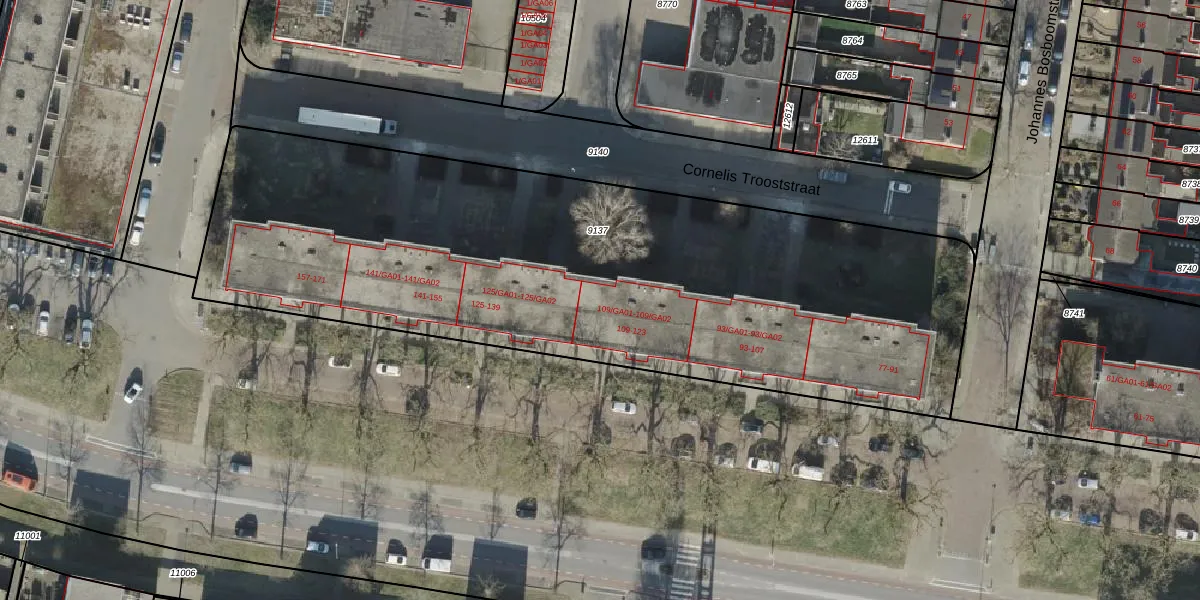 Het adres is gelegen op perceel 9137 in de sectie H en de kadastrale gemeente Ambt-Almelo. De kadastrale aanduiding is aldus AML01-H-9137. Het perceel is met 3760 m² relatief groot. Het gemiddelde ligt in de kadastrale gemeente Ambt-Almelo op 2066,72 m². Het kleinste perceel in de kadastrale gemeente is 0 m² groot. De grootste perceeloppervlakte is 67,4 ha. Er zijn 56 adressen aanwezig op het perceel. De huidige grenzen van het perceel zijn digitaal in de Basisregistratie Kadaster (BRK) geregistreerd op 22-10-2003.