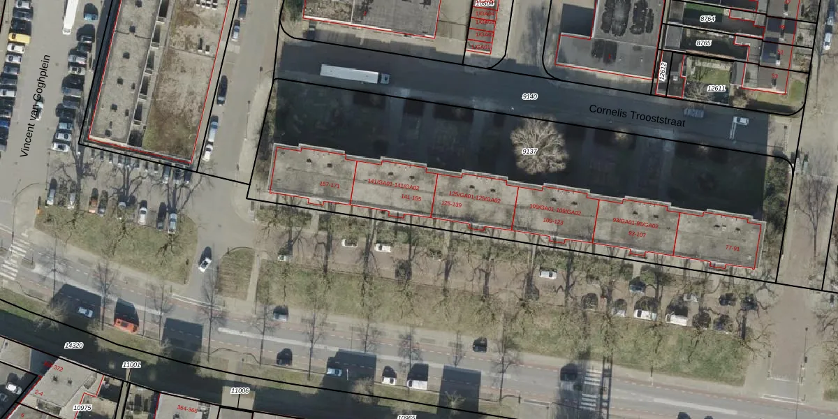 Het perceel waarop Rembrandtlaan 141 staat heeft een oppervlakte van 3760 m². Dit is een zeer groot perceel. De perceeloppervlakte wordt geregistreerd door het Kadaster. Gedetailleerde informatie over de maten van dit perceel kunt u vinden in het rapport Kadastrale kaart met maatvoering van Rembrandtlaan 141.