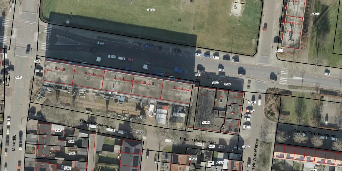 Het perceel waarop Rembrandtlaan 232 staat heeft een oppervlakte van 2678 m². Dit is een zeer groot perceel. De perceeloppervlakte wordt geregistreerd door het Kadaster. Gedetailleerde informatie over de maten van dit perceel kunt u vinden in het rapport Kadastrale kaart met maatvoering van Rembrandtlaan 232.