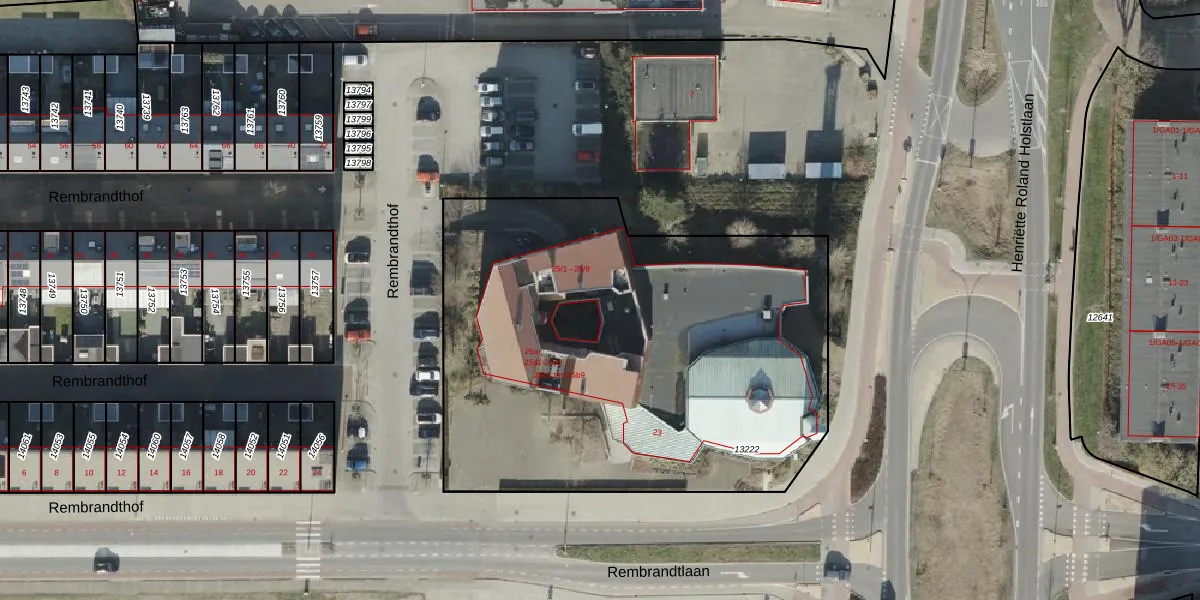 Rembrandtlaan 25-3 is gelegen op kadastraal perceel AML01H13222. Deze kadastrale aanduiding is uniek en wordt gebruikt door het Kadaster om eigendomsrechten en andere zakelijke rechten vast te leggen. Het perceel maakt onderdeel uit van de kadastrale gemeente Ambt-Almelo.
