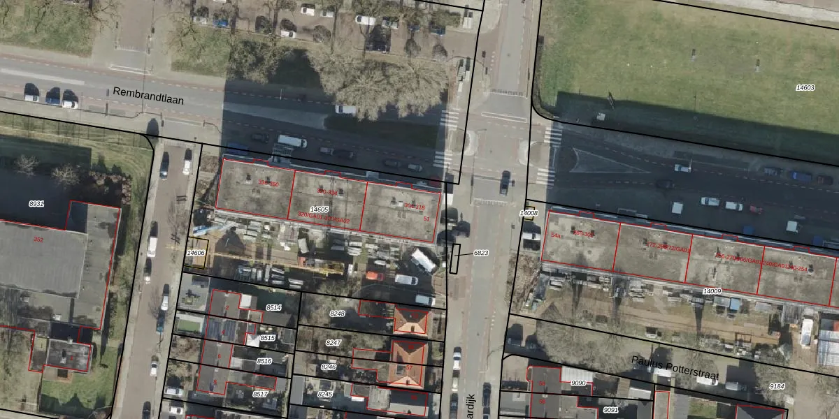 Het perceel waarop Rembrandtlaan 306 staat heeft een oppervlakte van 1855 m². Dit is een zeer groot perceel. De perceeloppervlakte wordt geregistreerd door het Kadaster. Gedetailleerde informatie over de maten van dit perceel kunt u vinden in het rapport Kadastrale kaart met maatvoering van Rembrandtlaan 306.