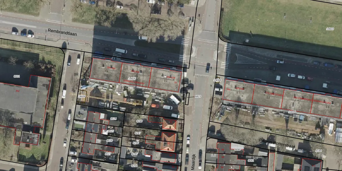 Rembrandtlaan 310 is gelegen op kadastraal perceel AML01H14605. Deze kadastrale aanduiding is uniek en wordt gebruikt door het Kadaster om eigendomsrechten en andere zakelijke rechten vast te leggen. Het perceel maakt onderdeel uit van de kadastrale gemeente Ambt-Almelo.