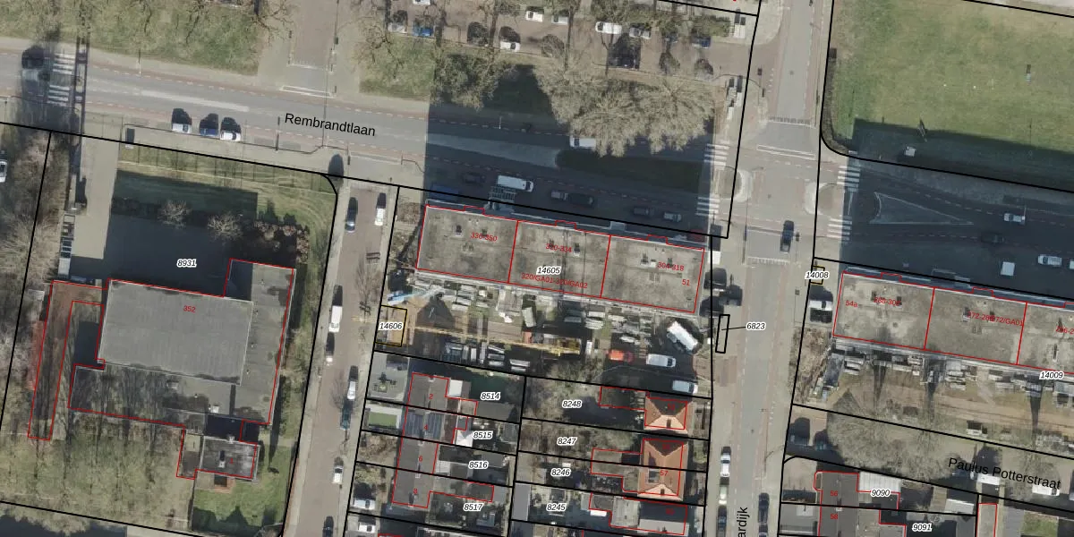 Het perceel waarop Rembrandtlaan 334 staat heeft een oppervlakte van 1855 m². Dit is een zeer groot perceel. De perceeloppervlakte wordt geregistreerd door het Kadaster. Gedetailleerde informatie over de maten van dit perceel kunt u vinden in het rapport Kadastrale kaart met maatvoering van Rembrandtlaan 334.