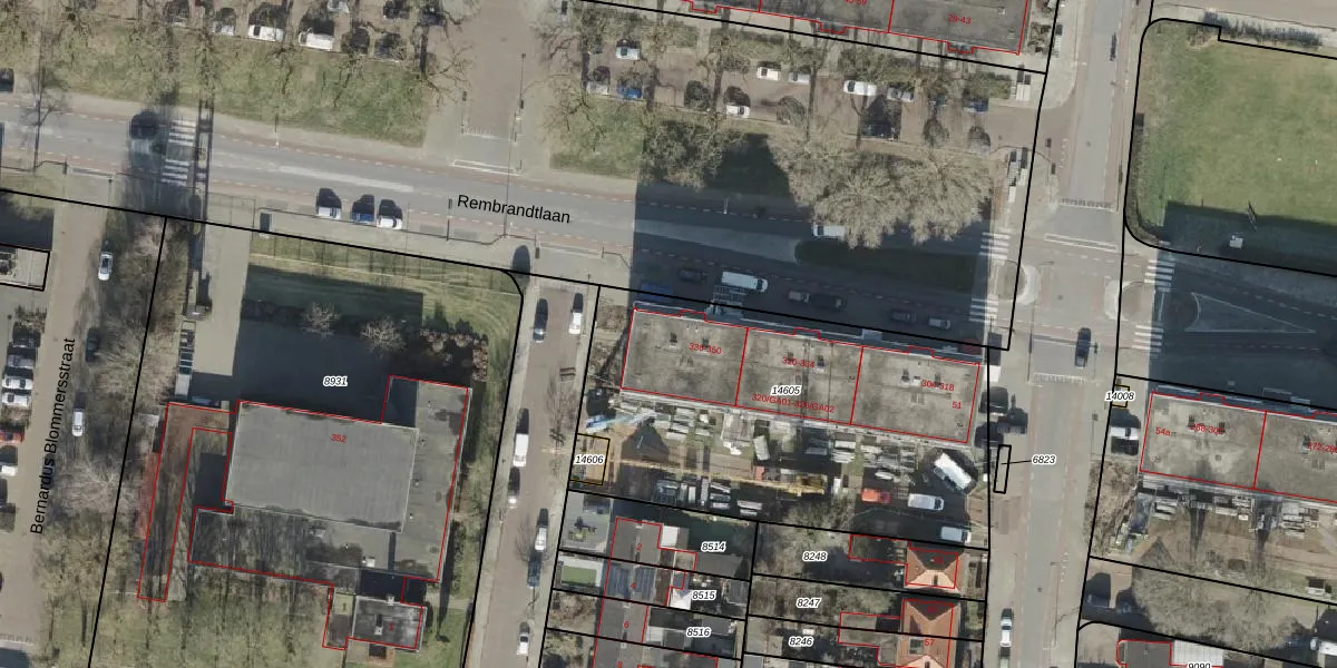 Het perceel waarop Rembrandtlaan 344 staat heeft een oppervlakte van 1855 m². Dit is een zeer groot perceel. De perceeloppervlakte wordt geregistreerd door het Kadaster. Gedetailleerde informatie over de maten van dit perceel kunt u vinden in het rapport Kadastrale kaart met maatvoering van Rembrandtlaan 344.