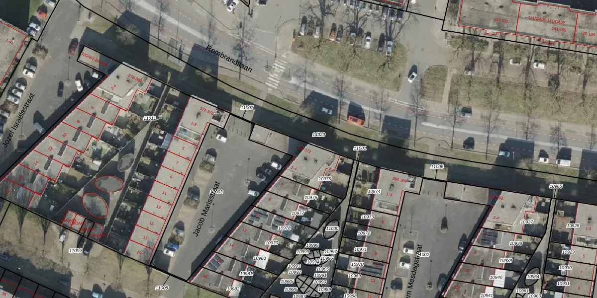 Rembrandtlaan 370 is gelegen op kadastraal perceel AML01H10975. Deze kadastrale aanduiding is uniek en wordt gebruikt door het Kadaster om eigendomsrechten en andere zakelijke rechten vast te leggen. Het perceel maakt onderdeel uit van de kadastrale gemeente Ambt-Almelo.