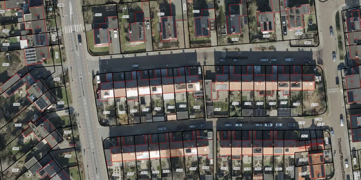 Het perceel waarop Reviuslaan 13 staat heeft een oppervlakte van 196 m². Dit is een middelgroot perceel. De perceeloppervlakte wordt geregistreerd door het Kadaster. Gedetailleerde informatie over de maten van dit perceel kunt u vinden in het rapport Kadastrale kaart met maatvoering van Reviuslaan 13.
