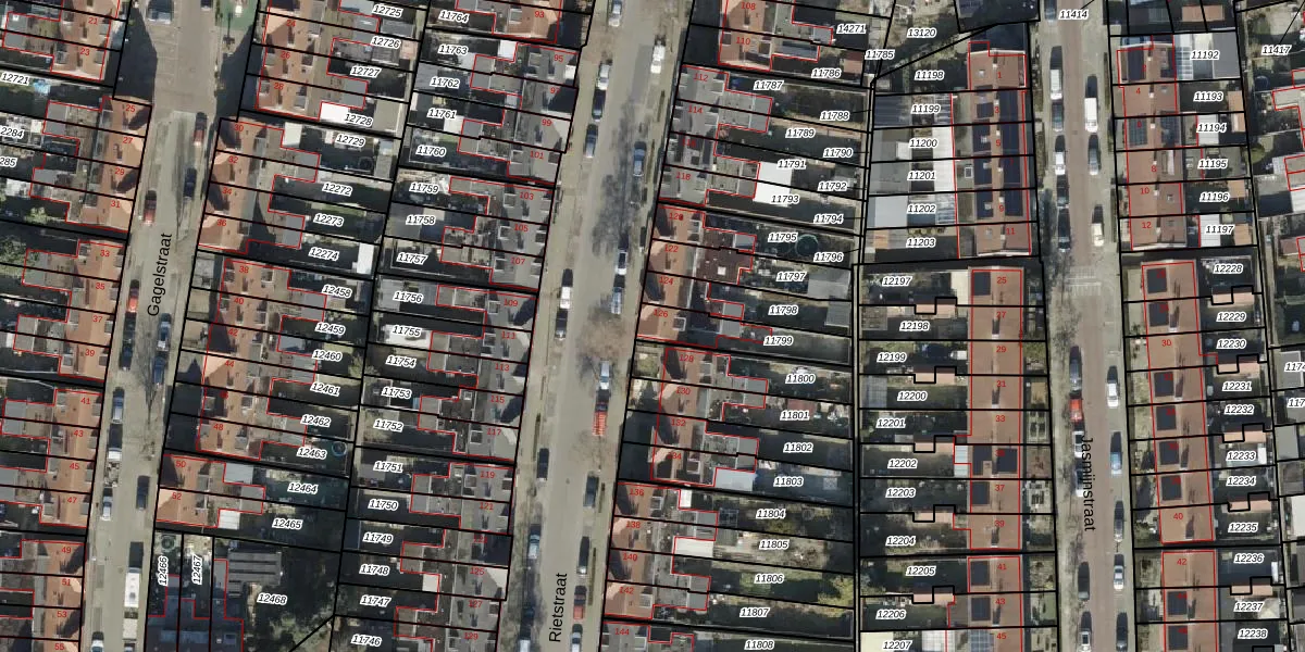 Het perceel waarop Rietstraat 126 staat heeft een oppervlakte van 166 m². Dit is een middelgroot perceel. De perceeloppervlakte wordt geregistreerd door het Kadaster. Gedetailleerde informatie over de maten van dit perceel kunt u vinden in het rapport Kadastrale kaart met maatvoering van Rietstraat 126.