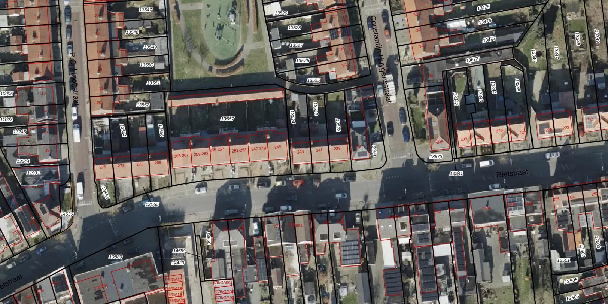 Gebruik de zoekbalk of klik op een perceel voor informatie over de adressen binnen dit perceel.