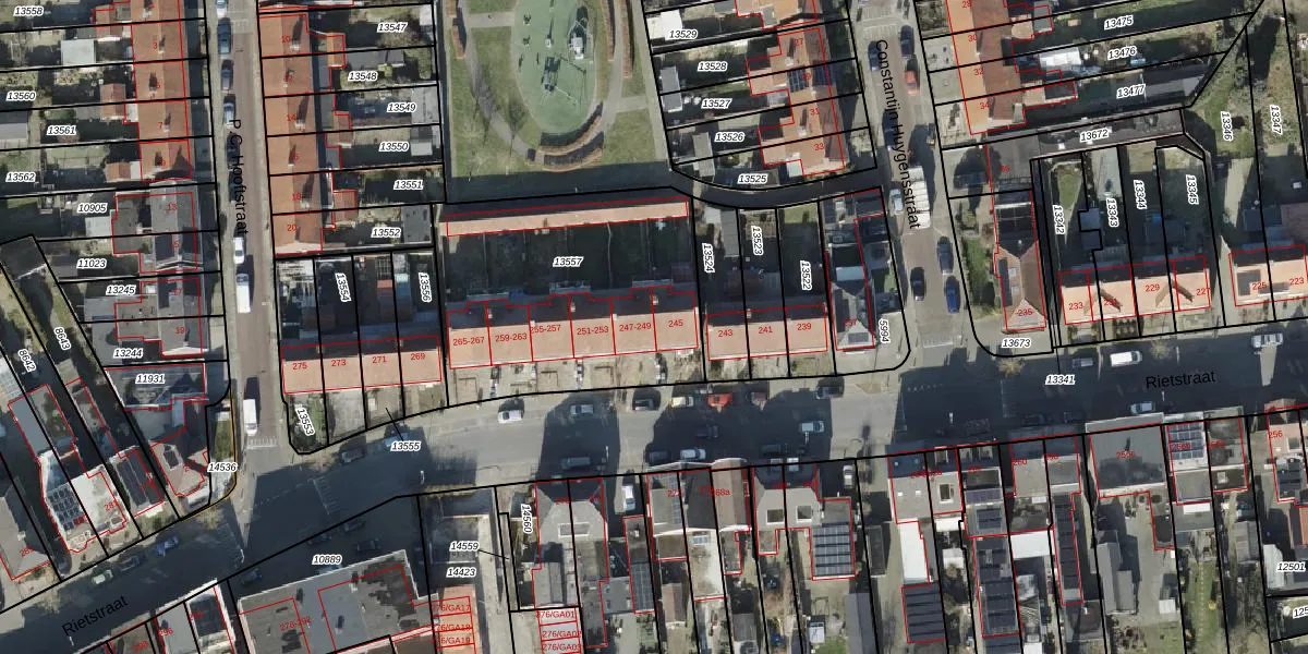 Rietstraat 247 is gelegen op kadastraal perceel AML01H13557. Deze kadastrale aanduiding is uniek en wordt gebruikt door het Kadaster om eigendomsrechten en andere zakelijke rechten vast te leggen. Het perceel maakt onderdeel uit van de kadastrale gemeente Ambt-Almelo.