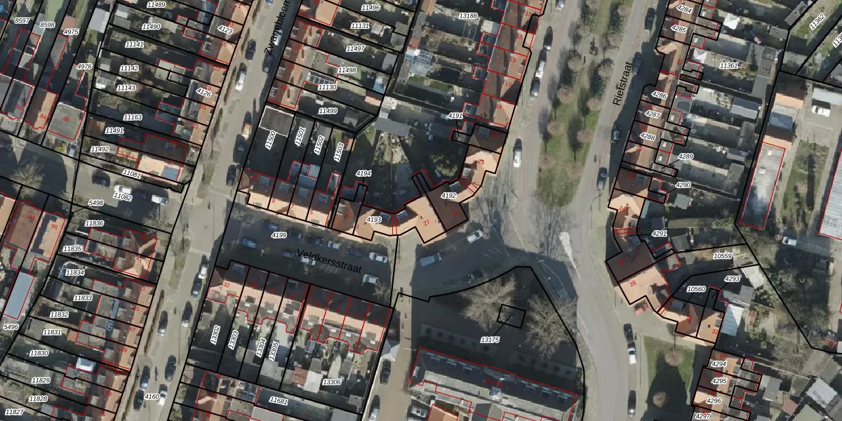 Rietstraat 27 is gelegen op kadastraal perceel AML01H4193. Deze kadastrale aanduiding is uniek en wordt gebruikt door het Kadaster om eigendomsrechten en andere zakelijke rechten vast te leggen. Het perceel maakt onderdeel uit van de kadastrale gemeente Ambt-Almelo.