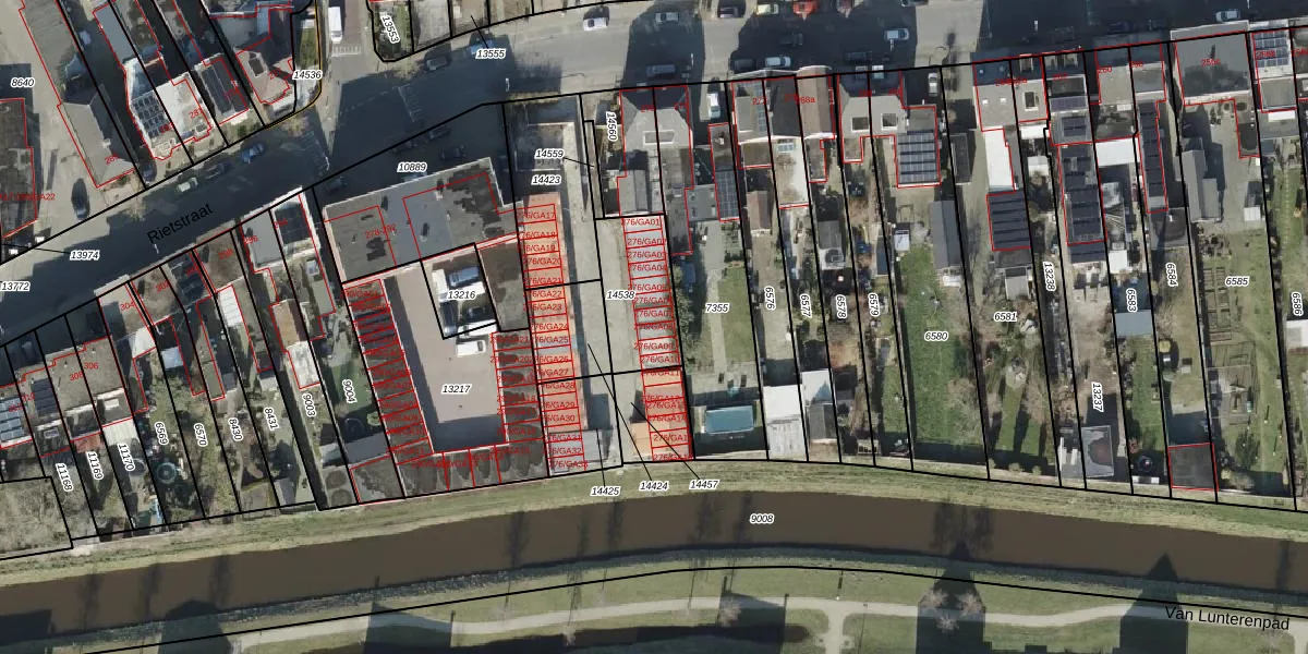Rietstraat 276-GA08 is gelegen op kadastraal perceel AML01H14538. Deze kadastrale aanduiding is uniek en wordt gebruikt door het Kadaster om eigendomsrechten en andere zakelijke rechten vast te leggen. Het perceel maakt onderdeel uit van de kadastrale gemeente Ambt-Almelo.