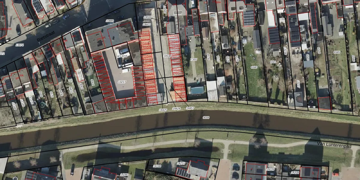 Rietstraat 276-GA14 is gelegen op kadastraal perceel AML01H14457. Deze kadastrale aanduiding is uniek en wordt gebruikt door het Kadaster om eigendomsrechten en andere zakelijke rechten vast te leggen. Het perceel maakt onderdeel uit van de kadastrale gemeente Ambt-Almelo.