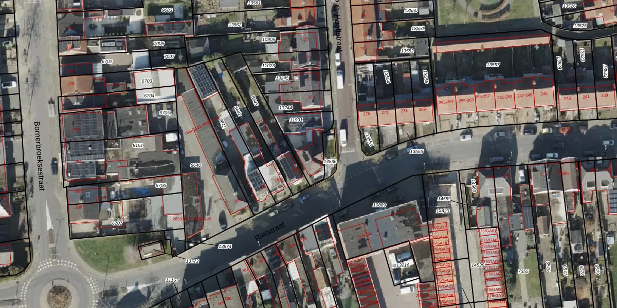 Het perceel waarop Rietstraat 277 staat heeft een oppervlakte van 266 m². Dit is een middelgroot perceel. De perceeloppervlakte wordt geregistreerd door het Kadaster. Gedetailleerde informatie over de maten van dit perceel kunt u vinden in het rapport Kadastrale kaart met maatvoering van Rietstraat 277.