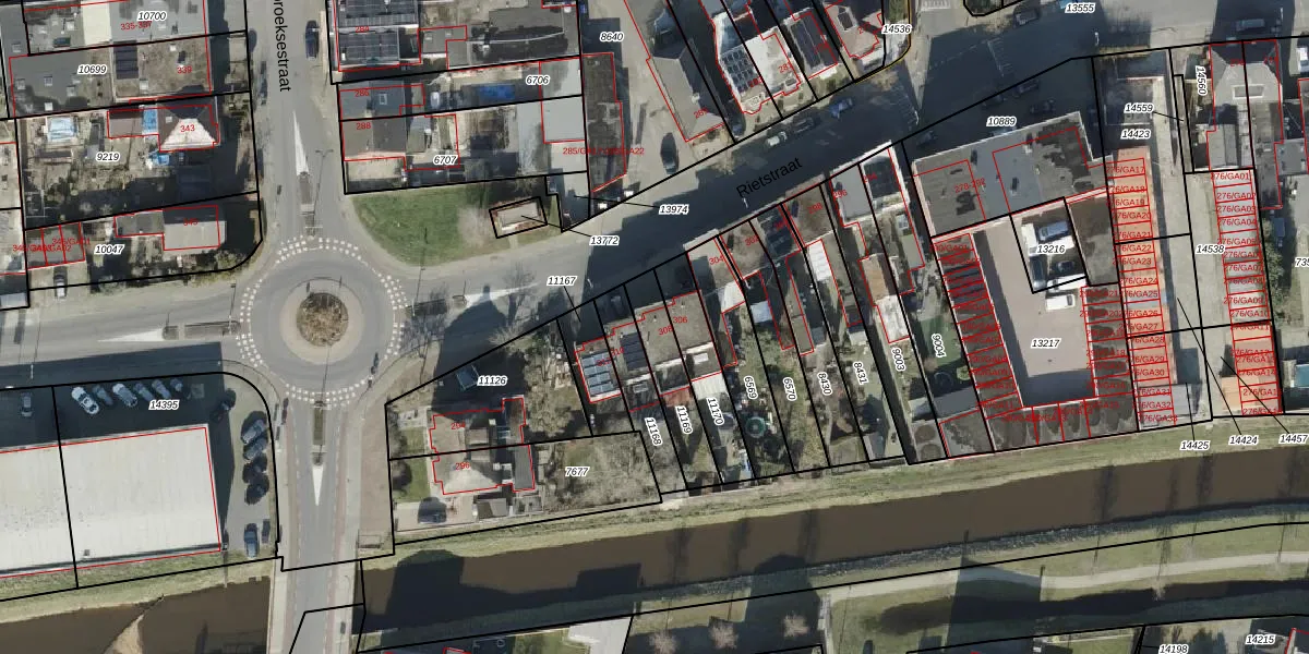 Gebruik de zoekbalk of klik op een perceel voor informatie over de adressen binnen dit perceel.