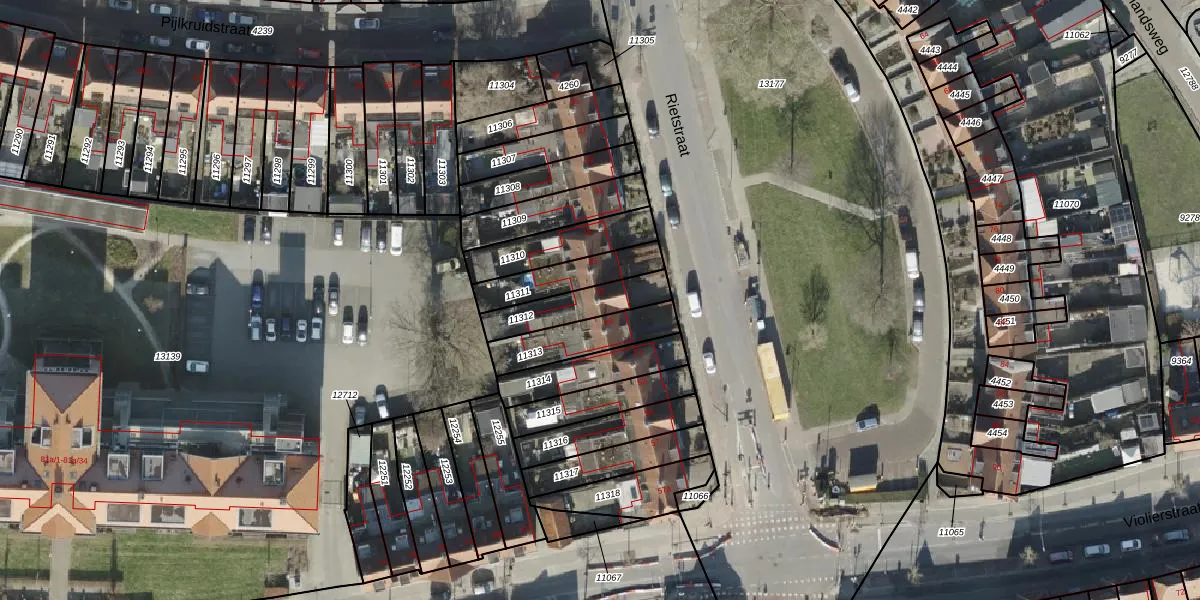 Gebruik de zoekbalk of klik op een perceel voor informatie over de adressen binnen dit perceel.