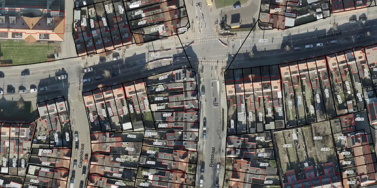 Gebruik de zoekbalk of klik op een perceel voor informatie over de adressen binnen dit perceel.