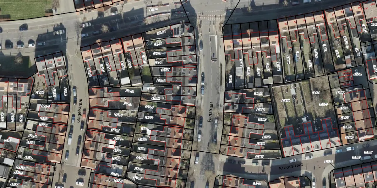 Gebruik de zoekbalk of klik op een perceel voor informatie over de adressen binnen dit perceel.
