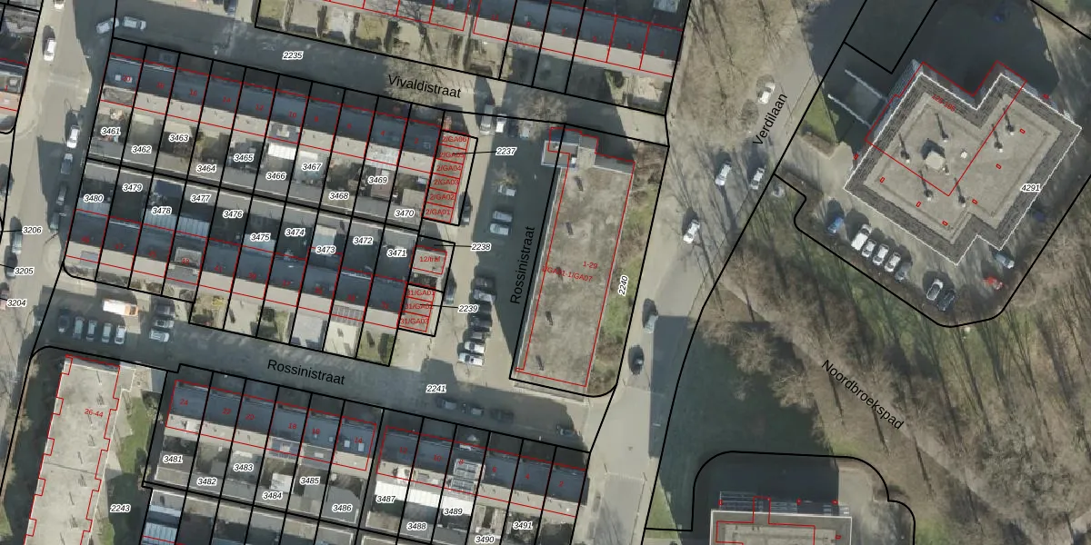 Rossinistraat 1-GA04 is gelegen op kadastraal perceel AML01I2240. Deze kadastrale aanduiding is uniek en wordt gebruikt door het Kadaster om eigendomsrechten en andere zakelijke rechten vast te leggen. Het perceel maakt onderdeel uit van de kadastrale gemeente Ambt-Almelo.