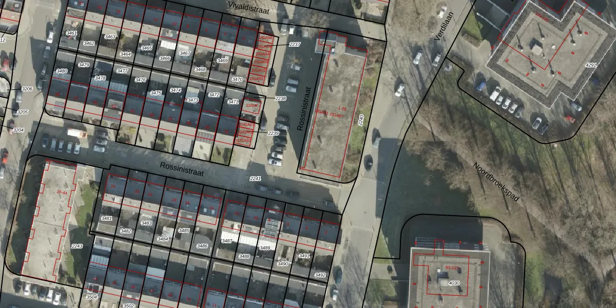 Rossinistraat 1-GA07 is gelegen op kadastraal perceel AML01I2240. Deze kadastrale aanduiding is uniek en wordt gebruikt door het Kadaster om eigendomsrechten en andere zakelijke rechten vast te leggen. Het perceel maakt onderdeel uit van de kadastrale gemeente Ambt-Almelo.