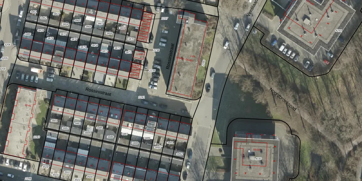 Rossinistraat 19 is gelegen op kadastraal perceel AML01I2240. Deze kadastrale aanduiding is uniek en wordt gebruikt door het Kadaster om eigendomsrechten en andere zakelijke rechten vast te leggen. Het perceel maakt onderdeel uit van de kadastrale gemeente Ambt-Almelo.